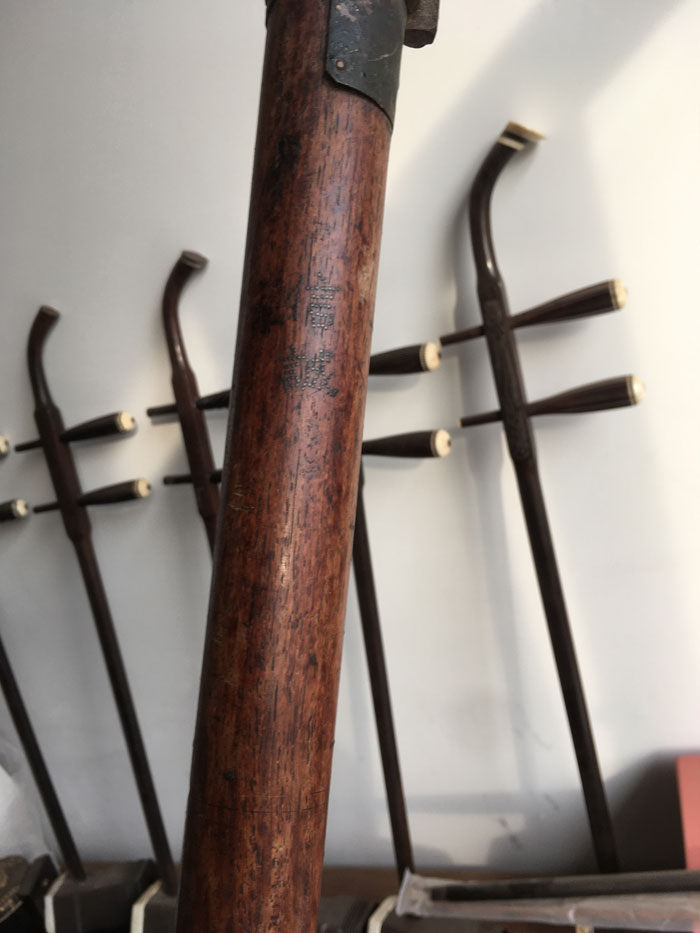 民国期(1912~49年)の楽器、二胡以外の弦楽器も含めてこの頃の楽器は、高級楽器については楽団用が主で、この高級という意味は今と同じで、すなわち材の価格であり、本黒檀、海南花梨、紫檀などが使われています。所有は経済力のある楽団か、材の産地の楽団などに限られる傾向があり、その他、財閥関係などに振る舞われていたので、北京、天津、上海あたりに集中して見つかる傾向があります。山東から河北南部の人々は、物を大事にする文化があるので、こういうところからも良いものが出ることがあります。
